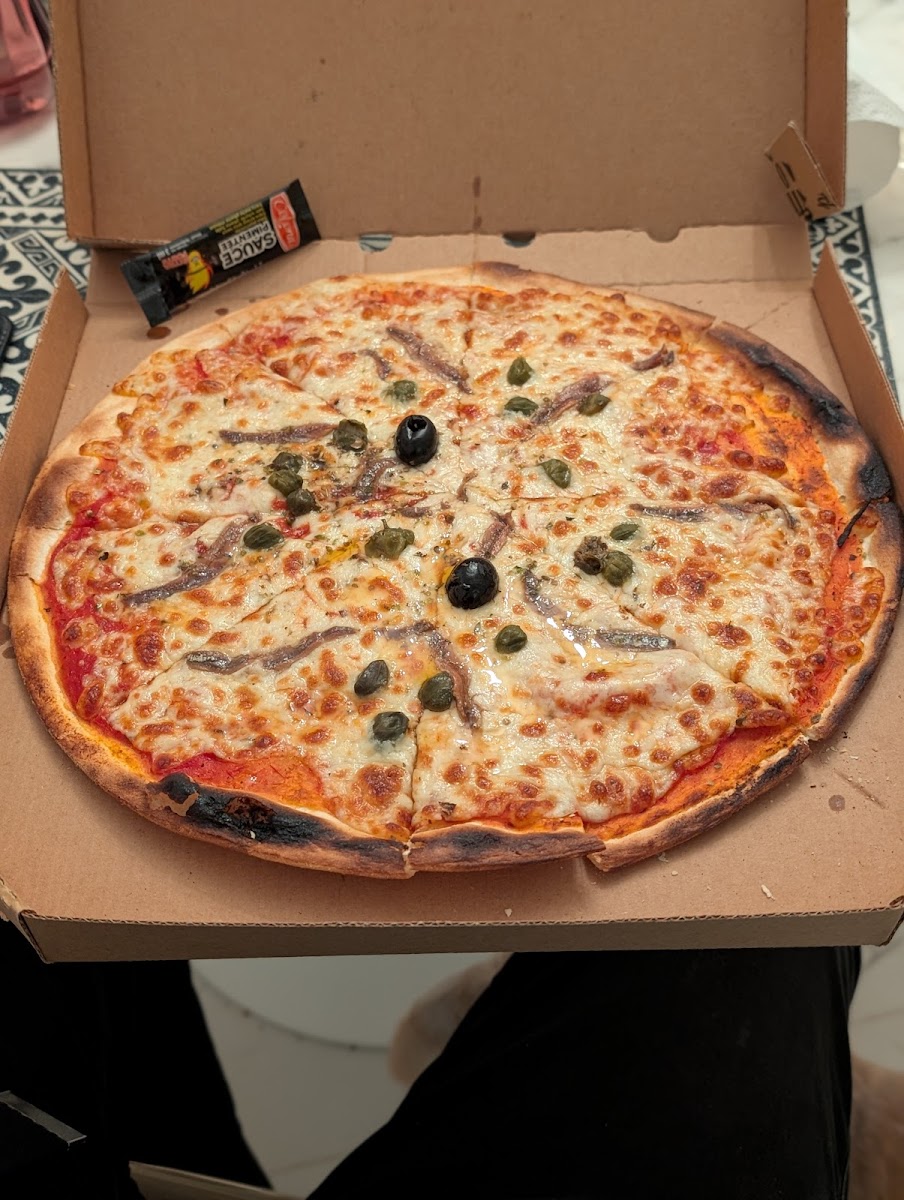 Amazing! I walked in and ordered, and the guy that served me spoke good English. He immediately started to make my pizza so I was in and out of the shop within the space of about 10 minutes. The pizza itself was great, I opted for the four cheese one which cost 10.80. I'm definitely going back! They have a lot of Vegetarian options too which is refreshing to see.